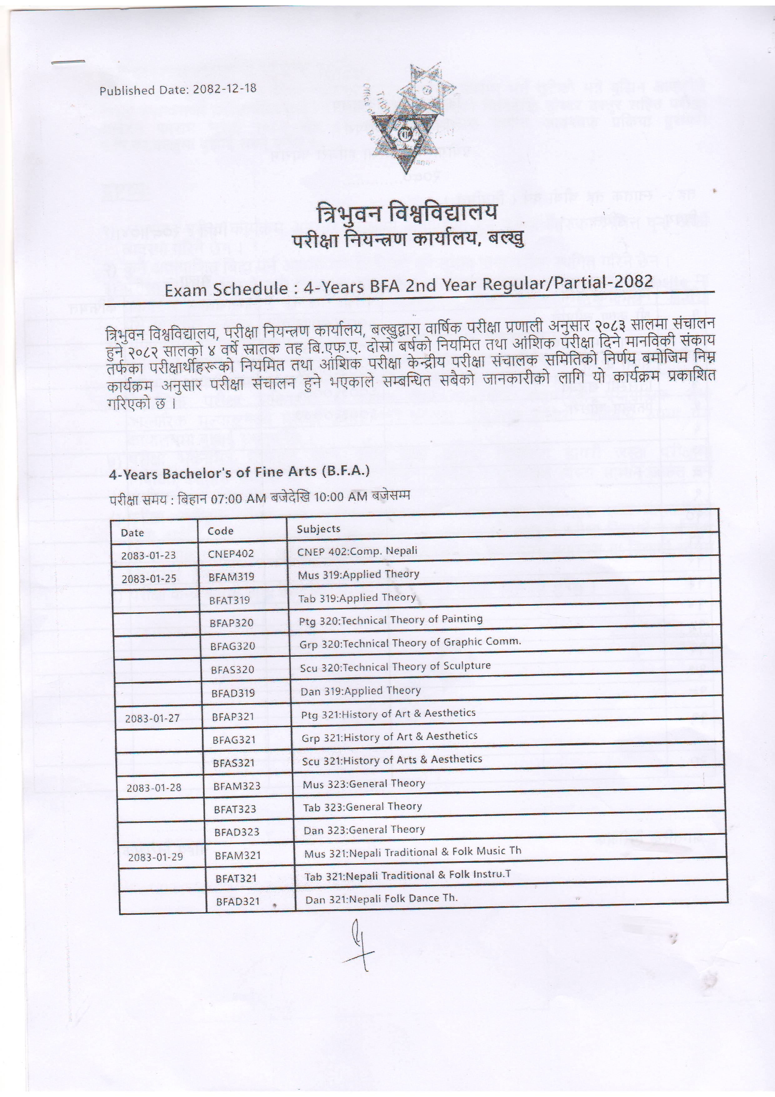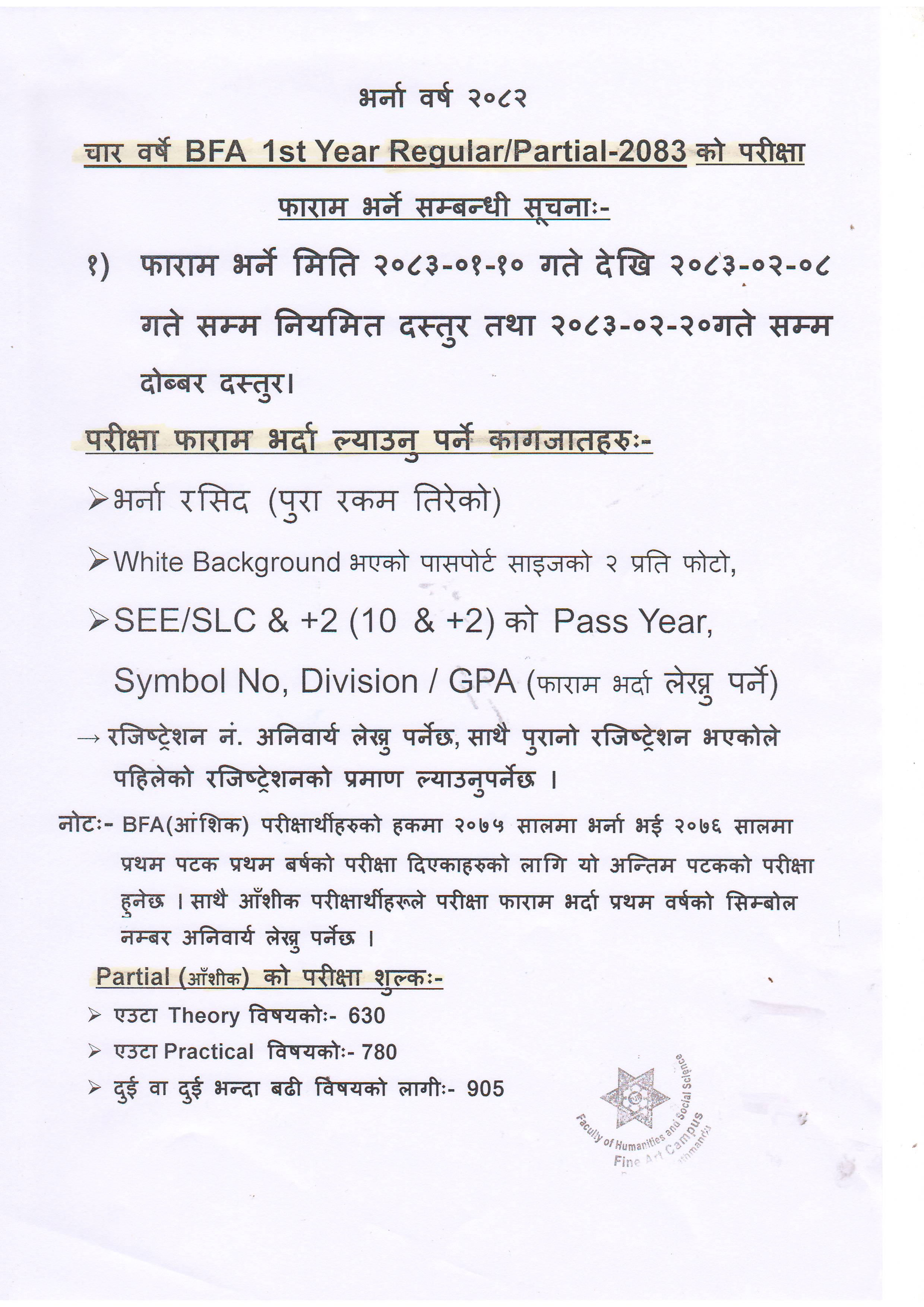 Lalit Kala Campus is the first college for fine arts in Nepal which was established in 1894. Students had no option and had to travel to India for taking higher level education in fine arts and for that reason Lalit Kala Campus was established. It is conducting bachelor and master level in fine art under the affiliation of Tribhuvan University (TU). It offers Bachelor of Fine Arts (BFA) in Music, Painitng, Sculpture and Graphic Communication. Lalit Kala Campus is located at Bhotahity, Kathmandu, Nepal. Tribhuvan University provides a bachelor’s degree in the field of arts and design, which is termed as Bachelors of Fine Arts (BFA). This course falls under the faculty of Humanities and Social Sciences. The total time required by the students to comp...