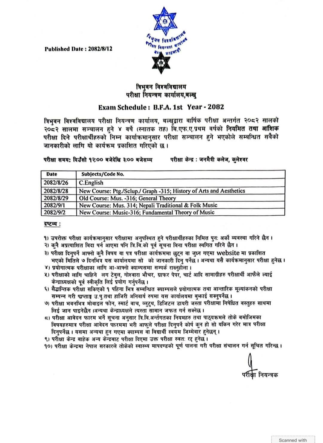 Exam Schedule of BFA 1st year- -2082