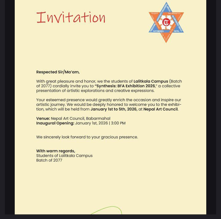 BFA Exhibition 2026 held by our Lalitkala Campus student (Batch of 2077) ,Please come and join us . Thankyou.