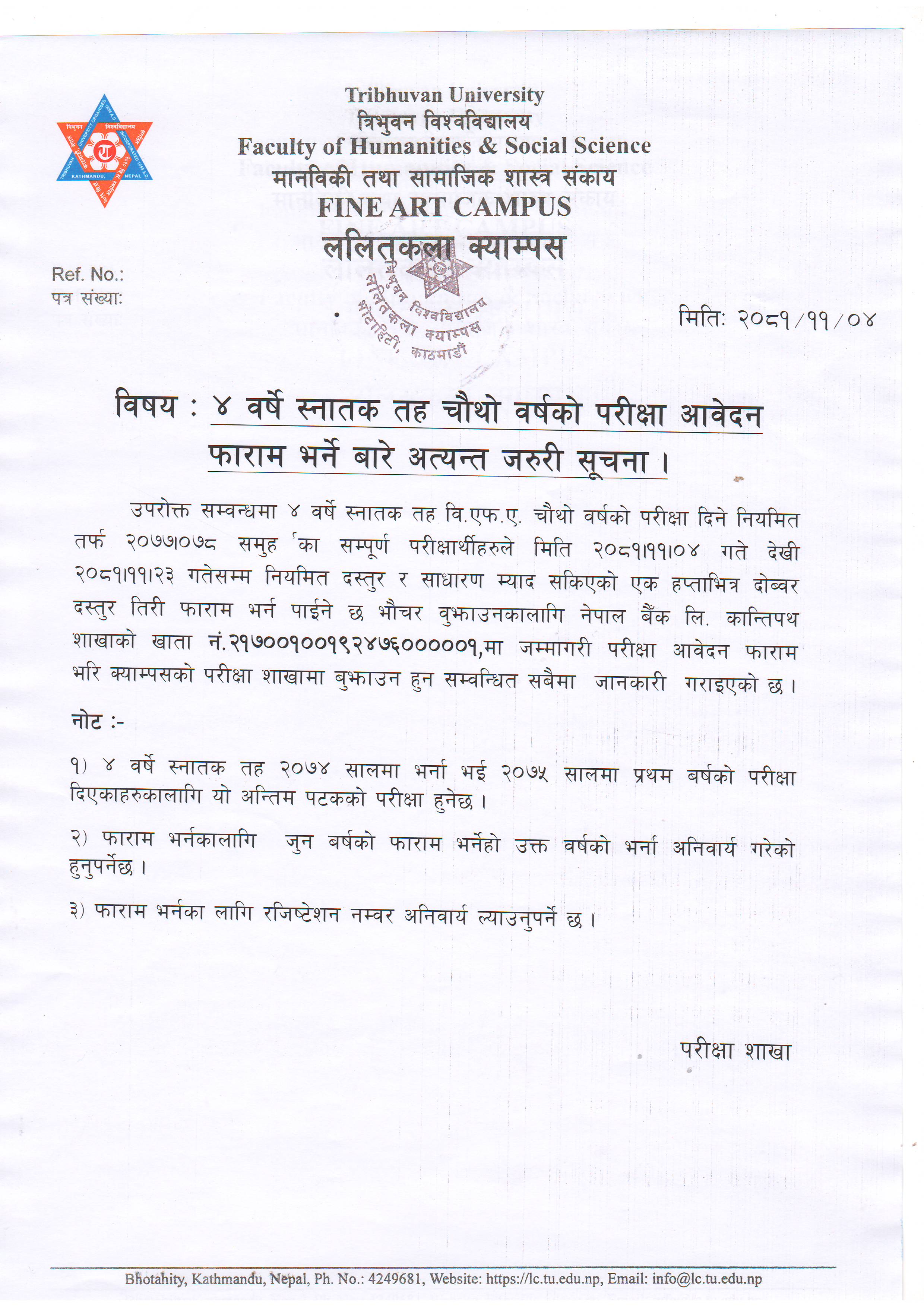 BFA तेस्राे वर्षकाे परीक्षा अावेदन फारम भर्ने बार...