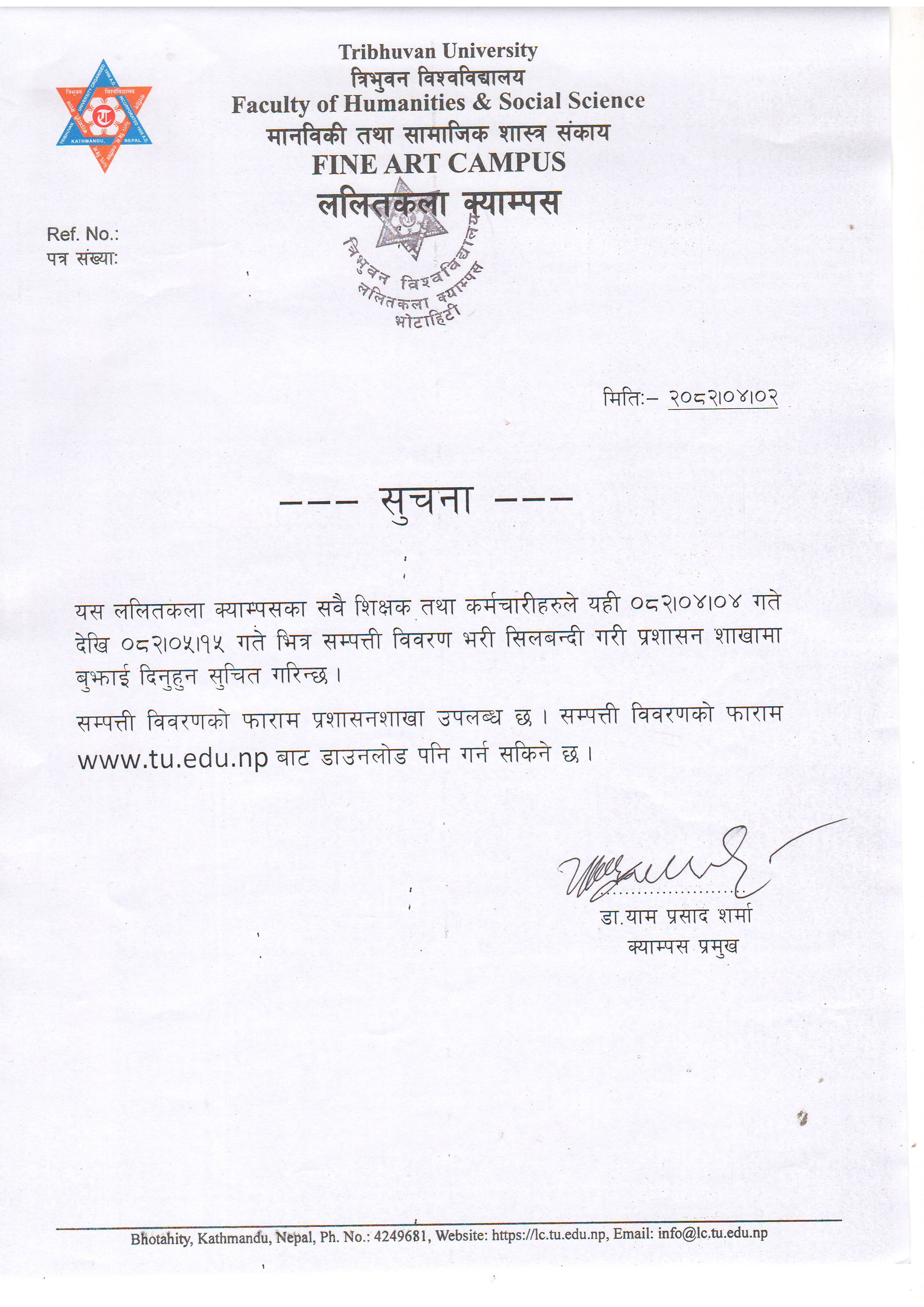 वि.एफ.ए दाेस्राे वर्षकाे माैका परीक्षाकाे सुचन...