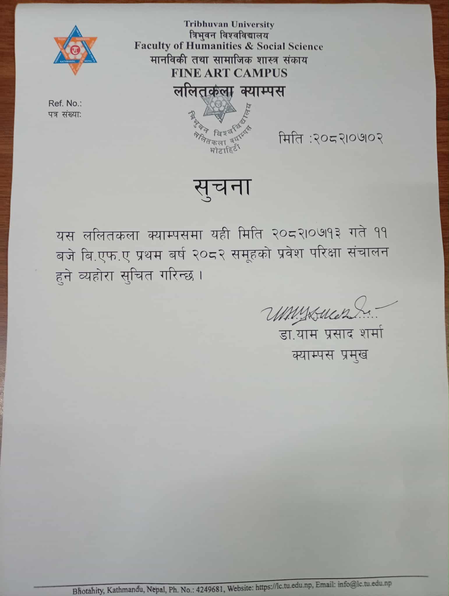 वि.एफ.ए दाेस्राे वर्षकाे माैका परीक्षाकाे सुचन...